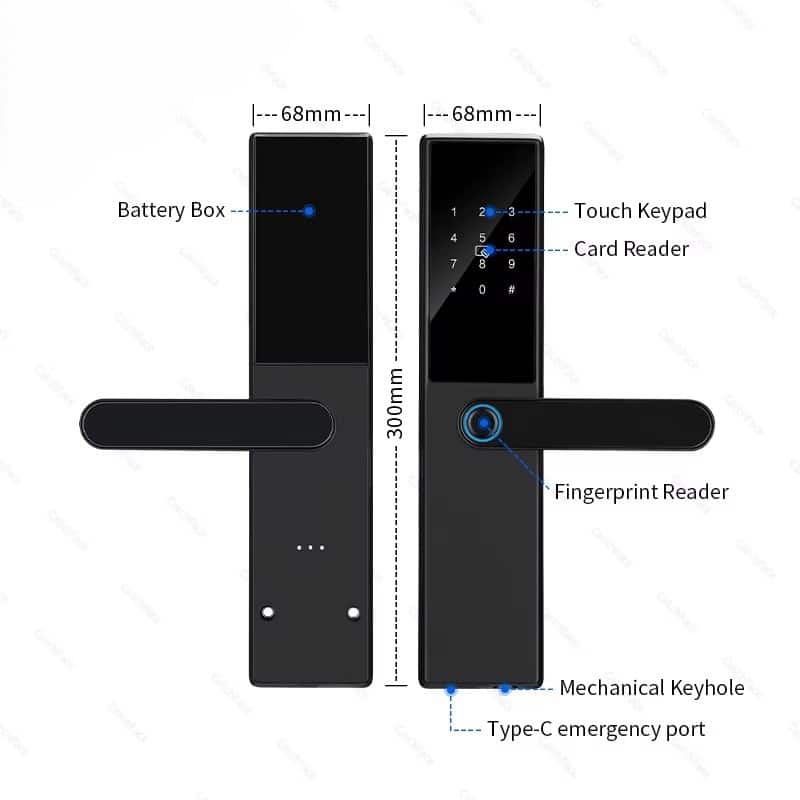 Ways To UnlockApp,Remote Control,Bluetooth,Mechanical Keys,Card,Password,FINGERPRINTMaterialAluminium alloy