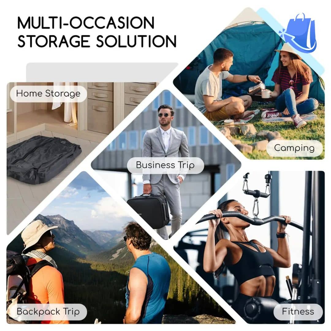 Keep everything in place with travel organizer bags for packing clothes that help you sort and access your items easily. These reusable travel compression bags for clothes keep your outfits neatly arranged, making your packing more organized and your travel experience smoother.