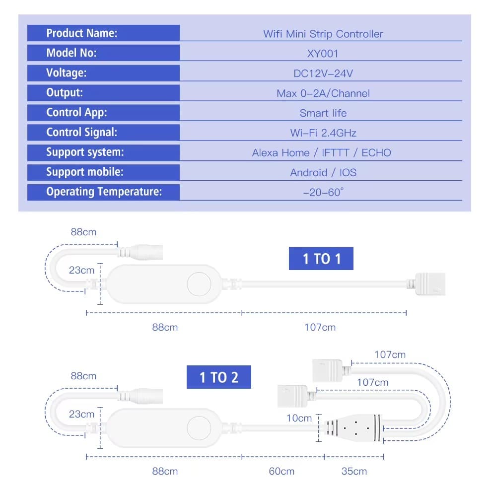 Model NumberTuya smart LED strip controllerOscillation frequency2.4GHz