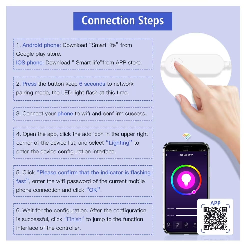Remote DistanceWiFiApplicable LightsRGB RGBW LED Strip